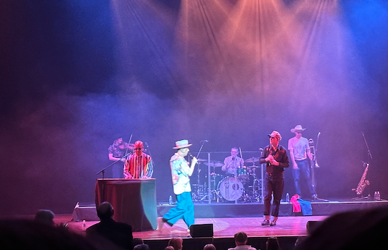 It starts with the band, then Kevin Rowland enters through the auditorium with hand held mic for the Bee Gees classic To Love Somebody. He did a cover on Let The Record Show – Dexys do Irish, Country & Soul. He looks great. He has charisma. Nice entrance, but we got the side spot right in the eye. The lighting plot utilises a lot of moving lights, including around the auditorium.