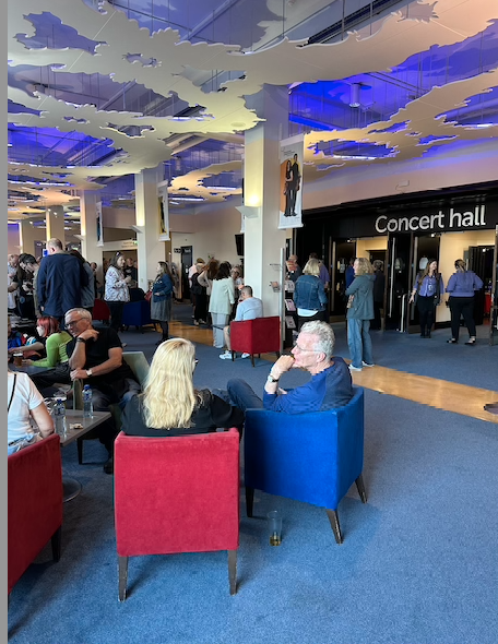 Everyone was up for two songs, then we sat. As the security staff moved a very few people from stage front, Kevin said ‘We don’t mind people dancing.’ OK, but that’s easy to say and crowd-pleasing, but in fact the hall has an issue. The normal routine in halls is ‘OK, last number and encore, everyone do what they want.’ Until then, they are mindful that there may be price variation in the seats. I remember seeing Fleetwood Mac (from the cheap side seats). Centre front was ten times the price, but the instant they started, Lindsay Buckingham invited everyone up front and they rushed from the back of the hall and stood, blocking the view. The hapless security staff are paid to stop that. (I’ve done it in the late 60s). Also when we all stood, two disabled people near me had no choice but to sit and stare at bums. Do it for certain numbers, then sit people back again. Don’t make the ushers jobs more difficult.