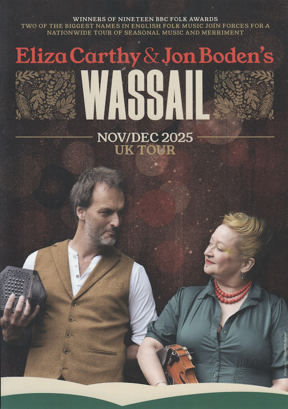 Both are multi-instrumentalists. Jon Boden played concertina more than I’d expected. Eliza Carthy used accordion for two songs with lots of comments. Quite often Eliza sang without playing, and Jon played concertina. I don’t want to reveal any of the introduction humour, but I will note some song origins. Their great point is that both are distinctive, instantly recognisable ‘signature voice’ performers. Not only that, they can still blend together.