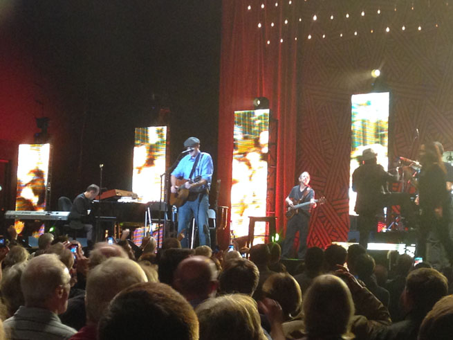 James Taylor, bottom left, still signing as the band start “Stretch of The Highway”
