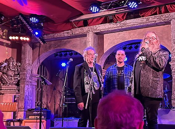 It was most ably compered by Jerry Ewing, seen here with Dylan Wetton and Geoff Downes.