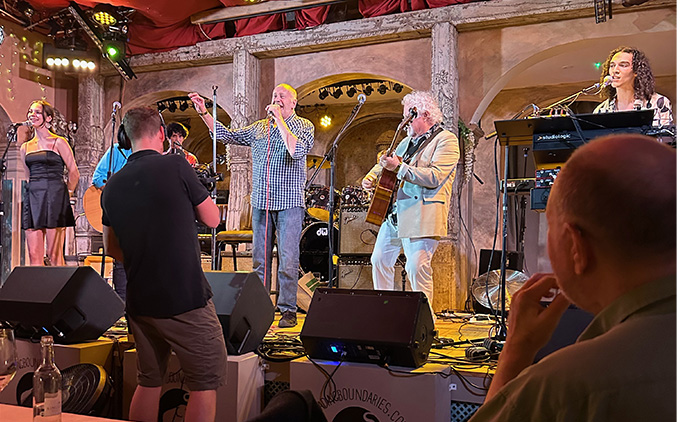 Lisa Wetton: When Paul Green informed me that the Rock Academy kids would be touring Europe in July, and were available for a show – perhaps even to do a tribute to John Wetton, I thought why not! We could do a lovely little fundraiser event at the beautiful Trading Boundaries, invite a couple of guest artists to tell some stories and play some music, and proceeds would go to Macmillan Caring Locally