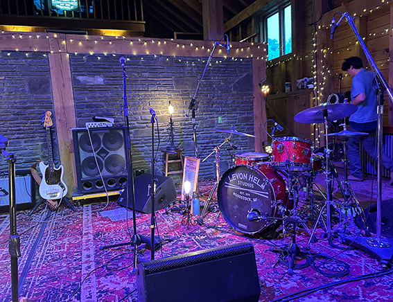 The buzz of the room, the atmosphere is incredible. The stage was set with drums in Levon’s favoured location, stage left facing in. Three small Fender amps, a large bass amp, keyboards stage right rear, Banjo, Harmony Rocket guitar and Precision bass on stands. We were in immediate conversation with our neighbours. It’s been a while and I’d forgotten how friendly American audiences are.
