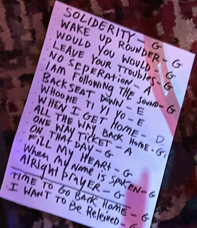 From their 2012 debut album they did No Separation, I Am Following The Sound, Put The Backseat Down and the closer, I Want To Be Relieved. Then from the most recent 2019 album, we had One Way Ticket, Whoopie Ti Yi Yo, When I Get Home, Would You Would or Would You Won’t. I bought those two albums on CD after the show, and the cover designs are ultra basic, so I failed to realise the album they were selling on vinyl, Hands Together, was a different one. Nor that there is a live album, Harvest Festival. The albums have inserts with full lyrics, but not the names of the band, and the writing credits are to the whole band.