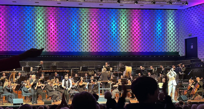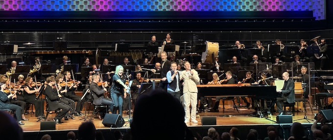 So far, I had not been impressed. I think they needed to support the lead singers. I would have liked a straight instrumental symphonic version of a song or two to highlight the orchestra. The banter was good.