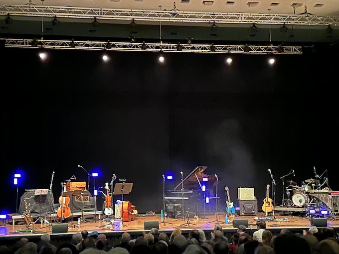 The stage set up in the interval. It was a long interval, but then there were long lines at the concession stand. A novelty was their back catalogue CDs in outsize sleeves. I was curious about an intriguing new format, but I already have everything.