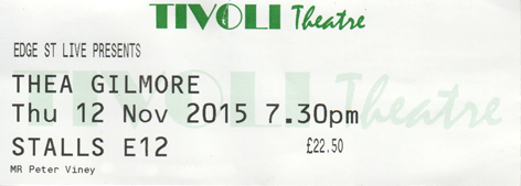 For me Inch by Inch was the outstanding song of the evening, just as it was the centrepiece of the Ghosts and Graffiti album. She said it was written for a friend on the Obama campaign who was so incredibly nervous and hopeful waiting for the results to come in. On the album, Joan Baez sang it with Thea, and she wondered if Joan was with us in feeling … pity it wasn’t Judy Collins she was invoking, as Judy has stood on exactly that spot at the Tivoli three or four times in recent years. Inch by Inch has an anthemic quality that writers dream of hitting … Thea Gilmore hit the very same vein of gold with London, played incessantly during the 2012 Olympics. They switched the line up so Nigel played piano, and Tracey bass guitar (a change from “either piano or bass”).