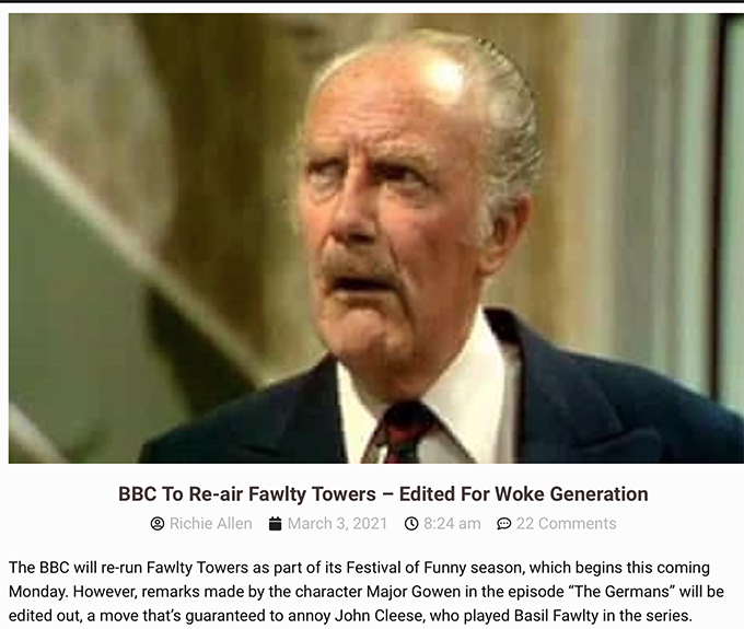 SEE “FAWLTY TOWERS & TALL POPPIES” for more on this, and other contentious sitcoms and TV programmes … attacked by “The Woke Brigade.” A quote from the article: