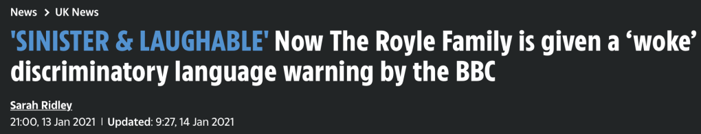 I’ve interspersed this with News headlines, because some people deny that WOKE now has a negative connotation. Yes, they’re often from iThe Daily Mail, The Sun, The Star, GB News … but also from The Daily Mirror, The Guardian and the BBC. I didn’t have to look far.