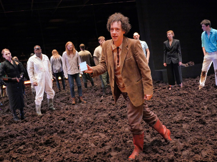 A circus ring full of mud. No props at all. No music, except a choral introduction from the whole cast (an effective Gaudea) then Bottom’s unaccompanied songs, and the Singing fairy. Little dance. No fairy attendants. Modern dress. The only bit of costume was what looked like some tights stuffed to form the Ass’s ears, plus a plastic dangling donkey penis. So this was the Dream stripped to its bare bones, but it proved that the elements still work. It is an unmagical, unmusical Dream, and it did focus on the darker side, but this play can take almost anything directors throw at it. We thoroughly enjoyed it, and various bits of new light were cast.