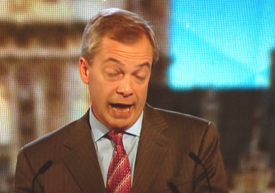 Farage was as usual, isolated. At the end of the row, doing his straight to camera “stuck record” technique, repeating his anti-EU stance. Farage had the hottest line of the evening, a direct “Stop lying!” to Ed Miliband. There are five politicians there. You expect five lies, but Farage was disputing a Miliband accusation.