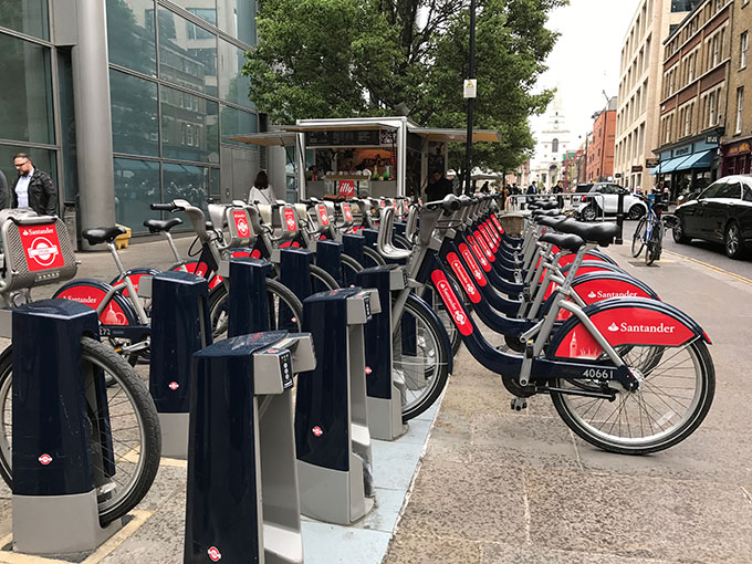 Three London mayors in a row have been dedicated to promoting the cyclist: Livingstone, Johnson and Khan. That’s why we got “Boris bikes” as they were once called. The rental ones are quite hefty, not racing models, but they can still be ridden pretty quickly. Now there are electric ones.And electric scooters.