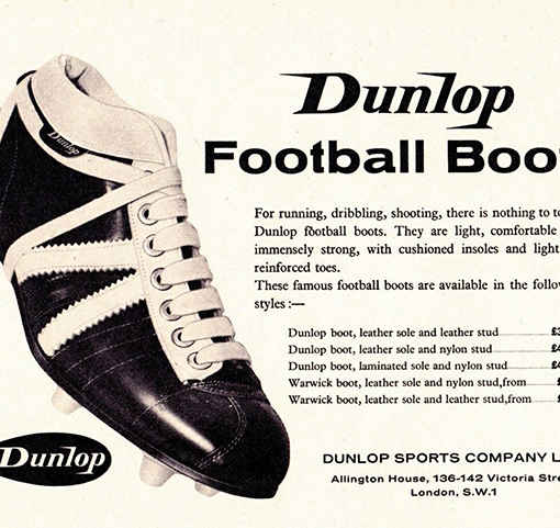 He later moved to John Bull Tyres, who then were taken over by Dunlop. We were pleased about the move to Dunlop. John Bull made car tyres, bicycle tyres, car fan belts, bicycle puncture repair kits and printing kits. However, Dunlop also made football boots, footballs and tennis racquets and we got them.