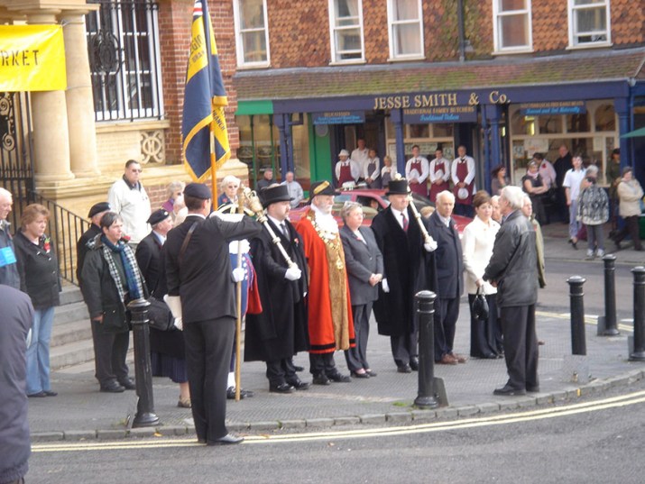 Remembrance Day, Marlborough, Wiltshire 2010. Note the shop staff lined up in the background