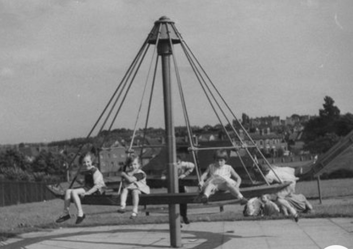 Then there was the ‘witch’s hat’ roundabout (aka the Ocean Wave). That was metal and swung alarmingly from side to side while circling. Older kids would encourage you to stand on the seats, clutching the vertical bars. The aim was to get it to sway so much that the circular base crashed into the central pole, perhaps trapping someone’s leg. The parkie might shout, ‘Yere! You nippers! No buggering about on the roundabout!’