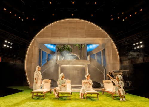 Visually stunning, but a four rather than a five. Though it’s a six for wigs. I’d love to see it at the end of its summer run. I suspect it may have gained an extra one. I was surprised to see Arica Akbar’s two star Guardian review, though along with The Times, she can often be lower in stars than the others. She points out that the comedy lacks snap. To a degree she’s right on comic timing, but it’s not intrinsically snappy dialogue. You can’t hit the humour that way, and they compensate visually. There is a little too fast delivery as she notes, which long speeches can fall into. When I’ve seen productions twice, I find that this happens near the start of the run, as here, when speed aids line memory. When I’ve seen the same production a couple of months later, the weight and space often has changed.