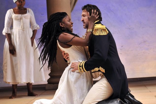 Not for the first time the actors playing Antony and Cleopatra seem bizarrely mismatched. Jonathan Cake, who I always think of as Jonathan Beefcake because of the rippling musculature which he so often seems touchingly anxious to show off, is very tall. In contrast his American Cleopatra, Joaquina Kalukango, is very short. It’s the little and large show, and more comic than sexy as Cake stoops to talk to his beloved.
