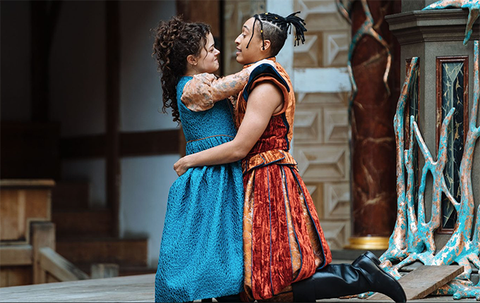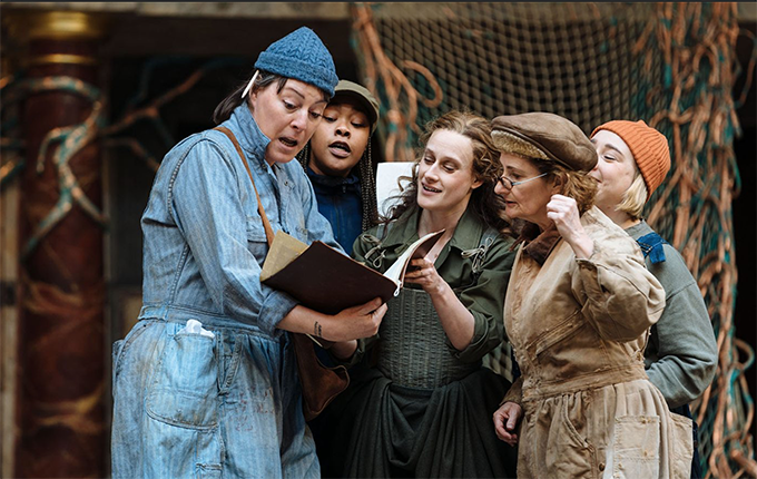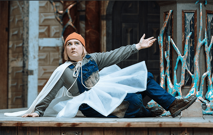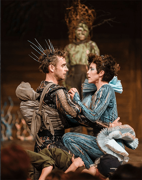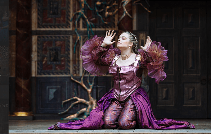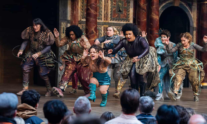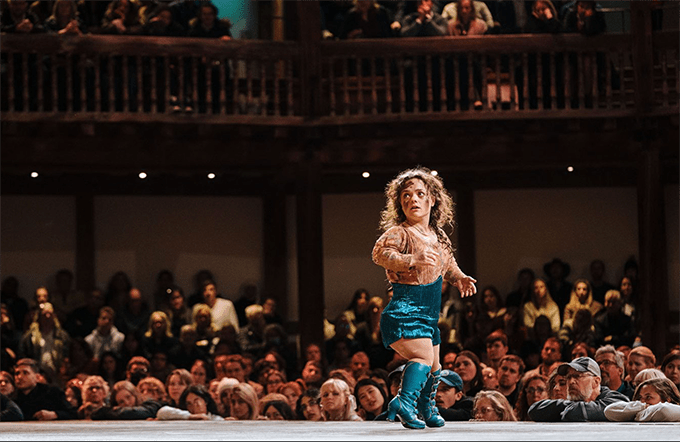 Where to start? The boss, Michelle Terry as artistic director is Puck. I’ve had my say on actors as artistic directors before. Laurence Olivier is always cited, but Olivier was a director too. Mark Rylance worked at The Globe, but all in all, it is a director’s job. Dominic Dromgoole and Emma Rice both did great things at The Globe. It’s gone down since. You try directing the boss. I have. My boss used to appear when we did the advertised The Importance of Being Earnest, Private Lives and A View From the Bridge (they were in the language school brochure). It always started, ‘Do feel free to direct me, dear boy.’ It was a waste of breath, especially as I had no say in casting him. As Artistic Director, Michelle Terry was Cordelia and The Fool in King Lear, Viola in Twelfth Night, Hamlet in Hamlet, Lady Macbeth in Macbeth, Percy in Henry IV Pt 1, Adam,. William and Jacques in As You Like It. The Taming of The Shew was recast nightly. Her husband Paul Ready passed the audition for that and for the lead in Macbeth too. Yes, it was exactly what the old actor managers and their partners did in the past (see Terence Rattigan’s Harlequinade). Yes, she is and always has been an outstanding actor.