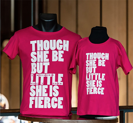 That is casting Francesca Mills, a reduced height actor, as Hermia. Hermia who inspires the T-shirts , posters, tea towels and badges at both the RSC and Globe with the slogan Though she be but little she is fierce.