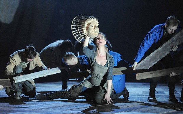 So does it work? To the extent that it’s a fascinating theatrical experience, full of ideas, I suppose it does. As a rendition of A Midsummer Night’s Dream, the success is only partial. Let’s begin with the positive. The whole company is on stage most of the time in the forest scene with intricately choreographed work with long planks to create an ever living forest. That works at the five star level.