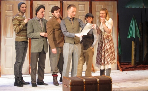 This was the very first night of what looks like an arduous tour of one night and two night stands, and like rock tours perusing the list shows some gruelling journeys. Fortunately the cast is young, energetic and fresh. We need more of Sell a door’s sort of work on tour: getting Shakespeare to some smaller places, having (mainly) schools audiences in fits of laughter, and all at a third or less of major theatre ticket prices.