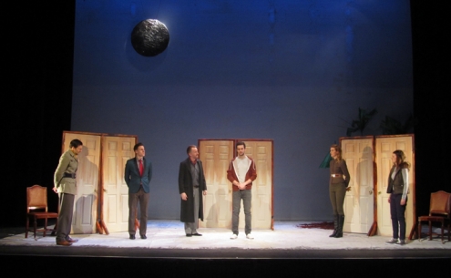 The production notes say they wanted to explore the harsher side of the play. We didn’t pick that up at all. It seemed a straightforward 2013 production of the play, worked to a minimum cast size. We didn’t detect any innovation in production. It was way less “off” or quirky than Filter’s minimal version, but then that’s really something different, and had a larger cast.