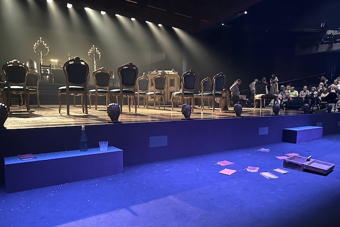 This version displays a dazzling display of theatrical styles. Importantly, the Japanese musical trio (who travelled for the production) are always there, and add ambient music as well as sudden effects on piano, violin or bass. They are a vital part of the concept.