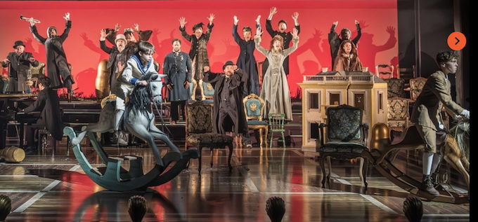 The production has a lot of high speed rushing (Russian –delete, not funny. Ed) about, and on and off, with the large cast, carefully choreographed too.