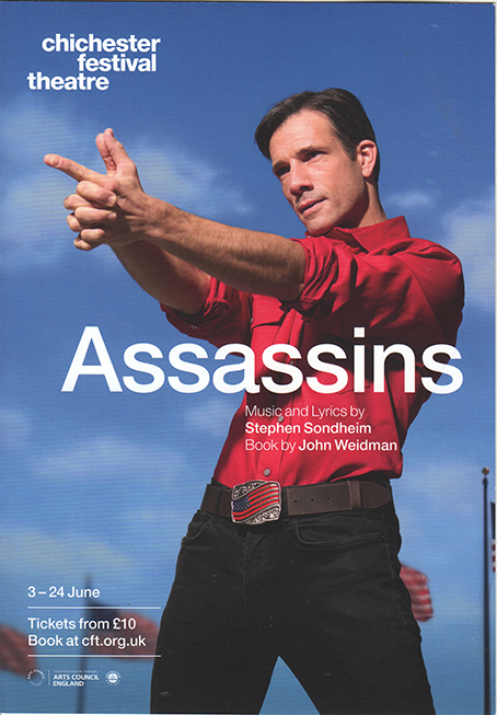 Assassins is the often-produced, highly-acclaimed late Sondheim musical, first produced in 1990. We’re seeing it on its third day in Chichester, ahead of press night, so early in the run. As it seemed so highly polished and professional, I’m assuming it’s at full quality.