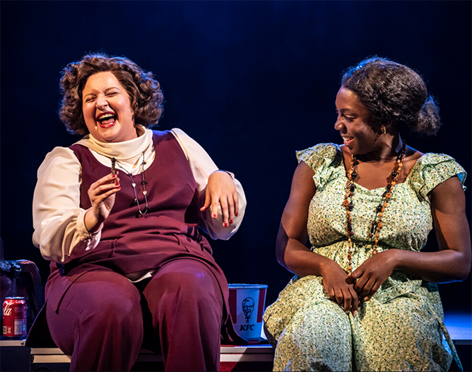 In Assassins Lynette Fromme and Sara Jane Moore are in concert to kill the hapless Gerald Ford, but in reality were separate and tried 17 days apart. The combination is a bonus, because the two form a double act that gives the best comedy in the musical. Fromme (Carly Mercedes-Dyer) is a Charles Manson disciple / girlfriend. Sarah Jane (Amy Booth-Steel) is from Manson’s home state, West Virginia. Amy Booth-Steel is a brilliant comedian, outstanding throughout, never less so than when sharing a joint and getting the giggles with Lynette. Trying out the shooting on a Colonel Sanders chicken wings tub is a wonderful moment.