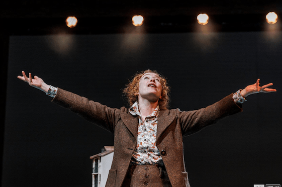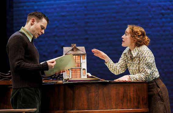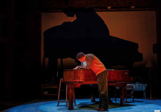 The excellent lighting design makes the most of it, projecting the piano shape on the back wall. A model of a house sits on the piano, and projects as if on a hill- not that it can be on a hill, because the house gets flooded (that has conveniently happened between Act one and Act two).