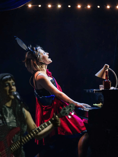 The original music score by Stu Barker is a major strength lyrically and musically, five stars without a doubt. He appears briefly then retires to percussion at the rear. Stephanie Hockley is credited as Musical Director and is acting as Trouble and plays piano. Her solo song as Trouble is a fabulous rock performance, keeping playing, standing up, as they roll the baby grand piano forward.