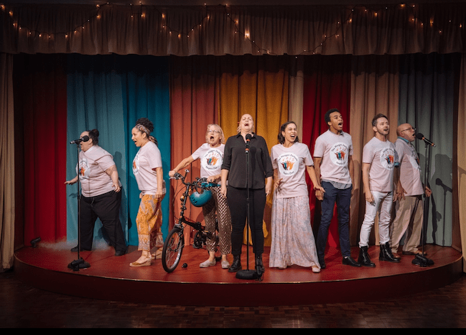 It’s run by Morgan (Laura Checkley), and she is a college lecturer. The choir was started by her and Paul (James Gillan) and they used to be in a rock band together a decade earlier. Morgan is the teacher, and there are hilarious sections where she tries to improve their performance by getting them to think about lyrics.