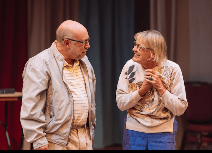 Then there’s Ken (Timothy Speyer), older than the rest, recently widowed, balding, just happy to be there. They’re waiting for Sheila (Annie Wensack ) who is the main (and very funny) comic performance. She is a compulsive liar and kleptomaniac, and everyone has to humour her, and fail to notice that her ‘home made vegan sausage rolls’ are in Greggs wrappers.