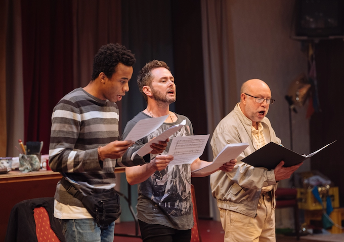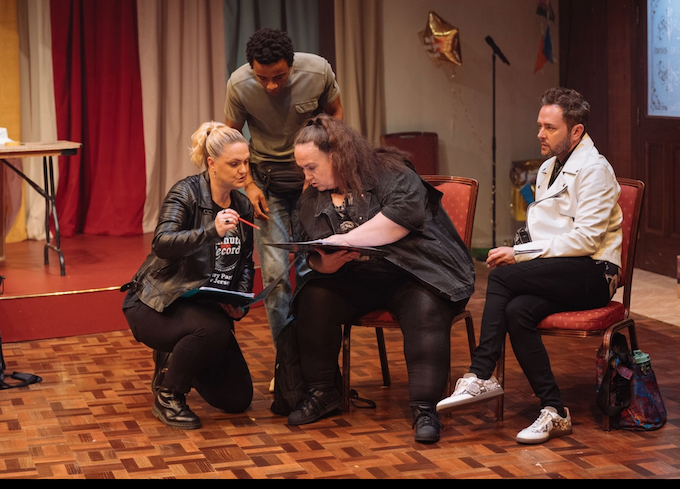 The play opens with Paul demonstrating his chops on Queen’s Somebody to Love, and believe me, emulating Freddie Mercury is very hard, and James Gillan does it brilliantly. Paul is the central character. He is gay, and almost 60s sitcom stereotypical with it. He flounces and minces and sulks, so much so that it’s a surprise to see such a rendition nowadays! Paul is the best singer by a mile, and has been in West End musicals, lets no one else forget that he was a professional, though now makes a living from radio voiceovers. If you’ve been in any amateur theatrical group, you will remember someone who has once trod the boards professionally (or is “resting”). Paul is also the most sympathetic character. More later.