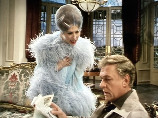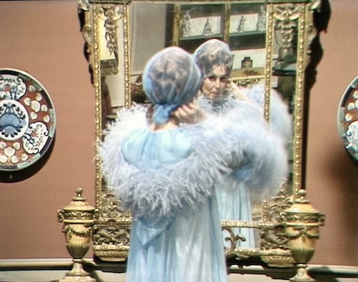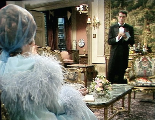 They had met her in Rome where Verner (surely Werner?) took a liking to her and Anne-Mary did not. Anne-Mary can’t receive her in a hair net so Verner welcomes her in. There are two BBC Playhouse hallmarks here – we see her outside the room (so outside the set) pushing the bell, and Verner crosses in front of an elaborate mirror to answer the door.