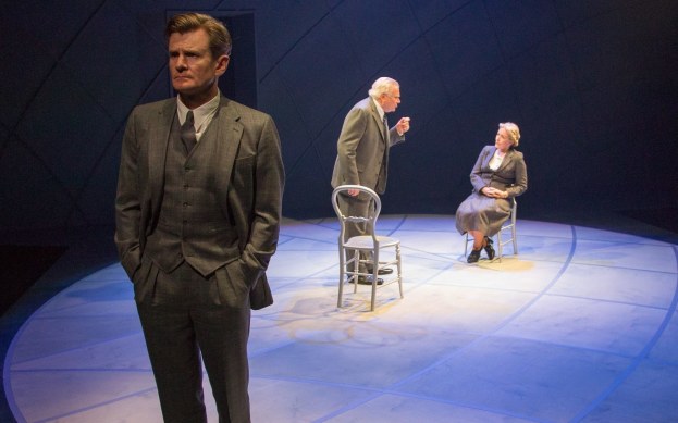 I depart strongly from Michael Billington’s comment on the explanations of Schrodinger’s wave function and Uranium 235 v Uranium 238. I think Paul Jesson was right to get them over with with alacrity, as he did. I’ll add other points discussed … Schrodinger’s cat, Heisenberg’s Uncertainty Principle, Quantum Mechanics, Bohr’s Complementarity Theory. It’s all Kryptonite to me, and I suspect to many (most?) of those watching the play. I found the first part of Act Two an indigestible barrage of physics. Fortunately the last section of Act Two is very good.