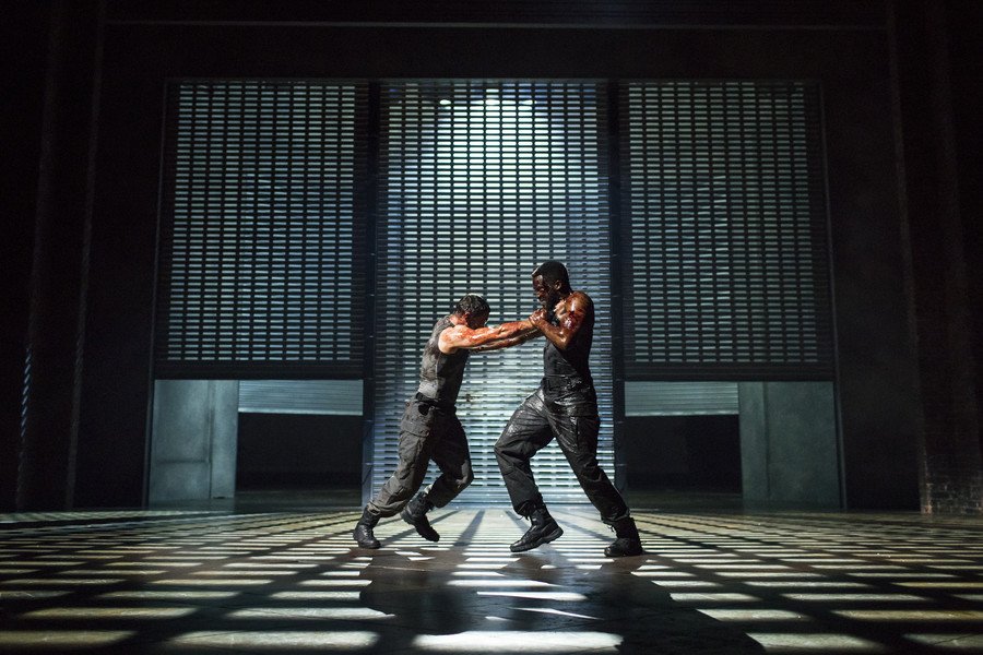 Aufidius (James Corrigan) v Coriolanus (Sope Disiru)
