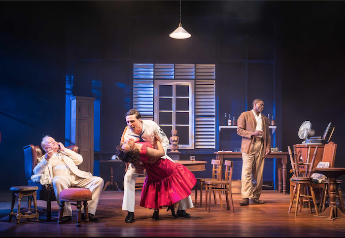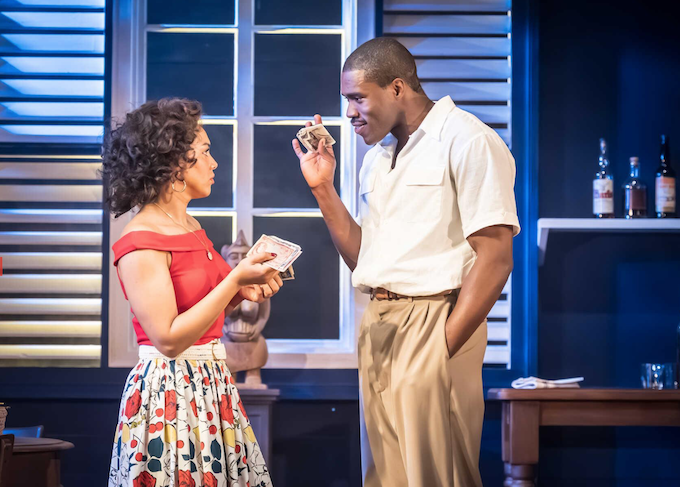 The play opens with Ruby (Cat White), who is dancing to music on the new expensive radio that Mansion has given her. She’s young and gorgeous (as are her mid 50s costumes). Casting such a good-looking actor in the role is a major plus in the production. At one point she is referred to as looking like Carmen Jones, and that may have inspired the hair style, clothes and make up. Talking of musicals, I’d cast her as Maria in West Side Story tomorrow. A large man appears, delivering a new consignment of rum.