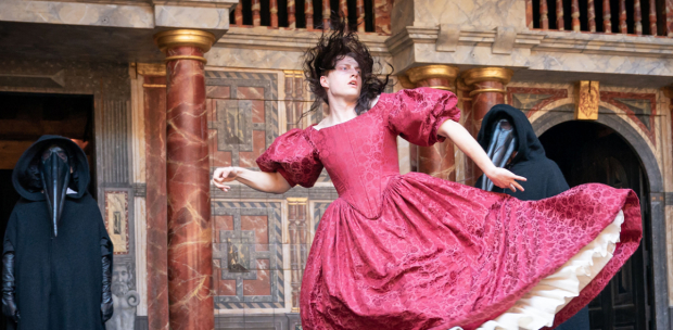 (It) makes full use of an extended front stage, with perpendicular flanks that come right out into the Globe’s pit. The amplified space is used for all sorts of action, from dialogue between characters cut off from one another, to a procession of burials that gives Eyam the quality of Hamlet on speed. It may reduce the space for groundings considerably, but lack of room for audiences is not going to be an issue here.
