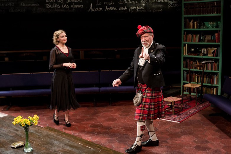 The play takes place in a French crammer in the mid 1930s. It’s run by Monsieur Maingot (David Whitworth) and his daughter Jacqueline is a teacher. Monsieur Maingot wrote his own textbook, which includes enquiries about a man walking and holding a red flag in front of a locomotive, evidence that it is some years out of date. Having dredged old phrase books for comic examples myself, this could have been expanded. They also have a servant, Marianne (Ariane Gray) who we only hear speak French.