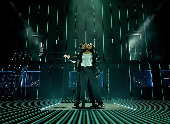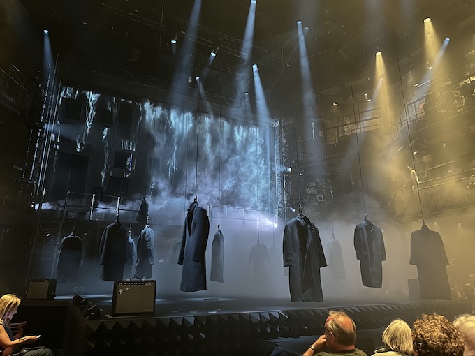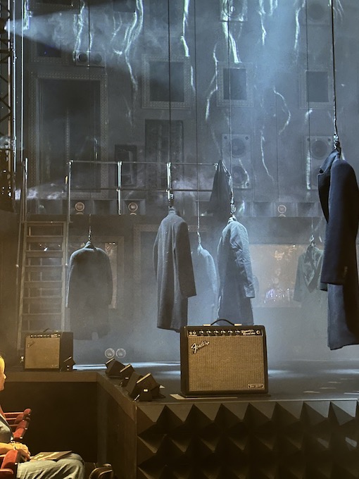 Thom Wolfe was adamant that it had to have a live band. It’s not Radiohead, but it’s not a tribute band either. These are different arrangements. The band are in separate sound booths across the set. They have two singers (often wordless) who appear in doorways above.