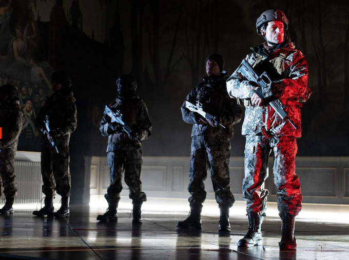 I’ve often looked at cutting the play, and my major sword stroke is the entire Fortinbras subplot. It is in here more or less in full. This week, the third week in January, it really was essential. They didn’t know this when they recorded it, but this is the week of Trump threatening Greenland. So here we have a King of Denmark (Claudius) being threatened by a foreign power. Who by?