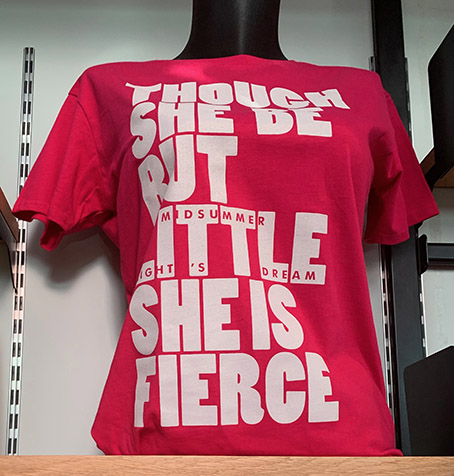 This popular sentiment had got laughter / applause whenever I’ve seen it before, though not here. I’m surprised the RSC doesn’t add it to its T-shirt range. We bought our granddaughter a Though she be but little, she is fierce one from Midsummer Night’s Dream.I suggested getting Karen one as she is five foot tall, but the response was … well, fierce.