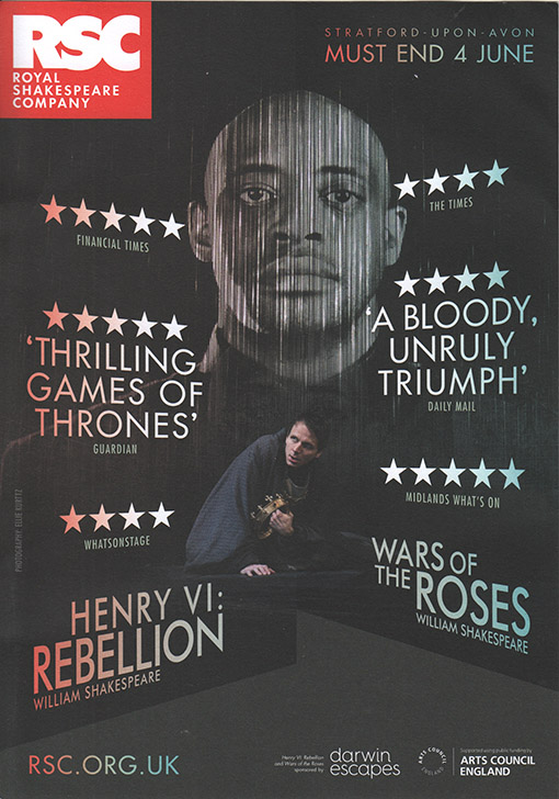 The RSC is presenting two plays together, Henry VI Parts 2 and 3, with added titles. They can be seen separately and on the same day, though they were poor in planning the sort of ‘Evening for Play 1 / Next day matinee for Play 2’ which travelling viewers like us prefer – one overnight stay.