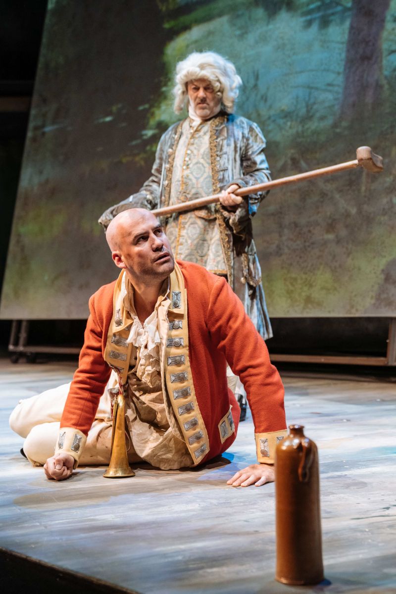 Garrick’s tour de force was when they meet the old soldier, Zachariah Blunt (Ben Deery), on their walk. Blunt tries to rob them, but is disabled after being stepped on by an elephant in India. Garrick offers to do his Macbeth (Garrick wrote his own dying scene) to prove who he is. It was a hilarious demonstration of 18th century actor manager hamming it up.
