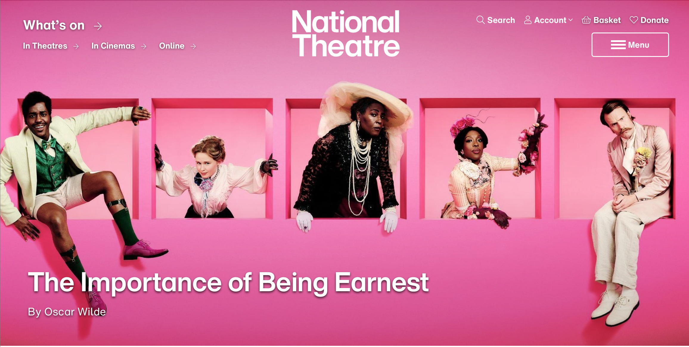 First, The National Theatre. It was a major surprise when they decided to do it. The National has been a powerhouse for new plays (and American plays) but thin on the classics of the British theatre. I see their point on Shakespeare, with The Globe just along the South Bank, and the Royal Shakespeare Company visiting the Barbican. They strenuously avoid the likes of Oliver Goldsmith, Oscar Wilde, Noël Coward, Terence Rattigan and Alan Ayckbourn, leaving that to Bath and Chichester, who will then move them to the West End (currently playing Bath’s Deep Blue Sea). The Importance of Being Earnest ranks to me as the greatest post-Shakespeare English comedy. The last time it appeared in London in a major professional production was Classic Spring in 2018. It’s a play where I know every line before it arrives. That means it needs something extra to keep me laughing.