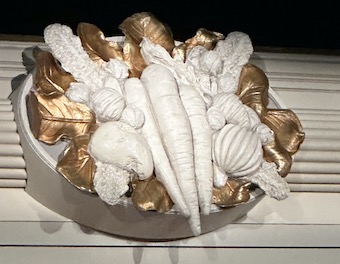 I have my doubts that this is a real crest … carrots, pumpkin, mushroom and Prince of Wales feathers?