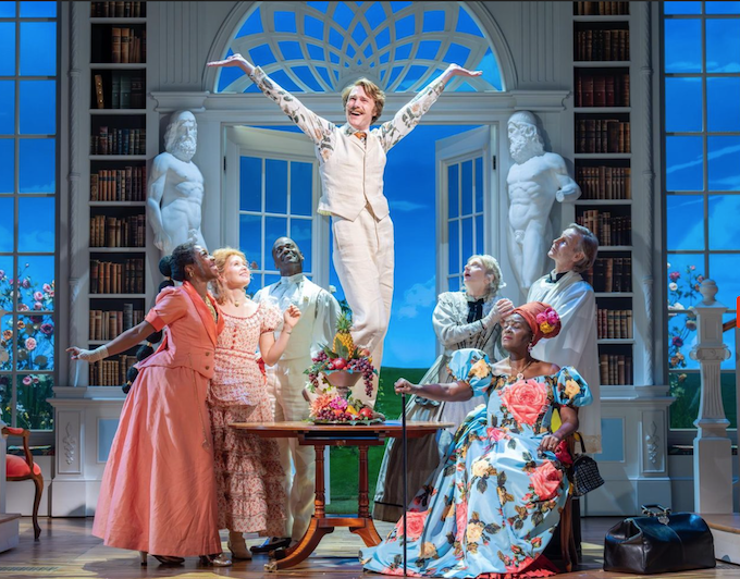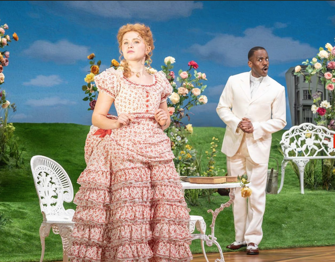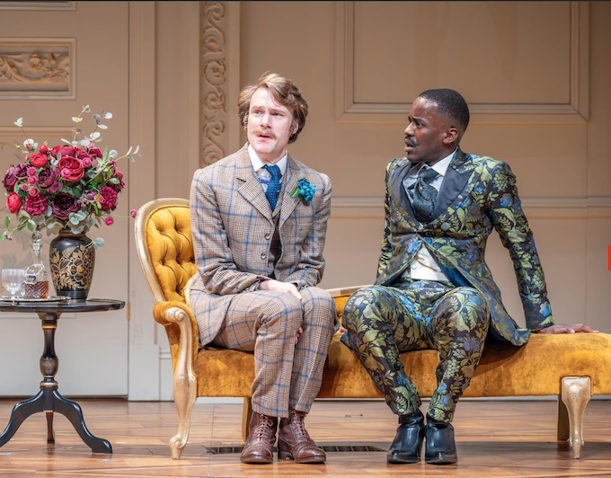 The programme notes are very good. I never knew there was a deleted act at the Savoy Hotel, but they note that they have revived Wilde’s preferred four act structure, with an interval after two acts. This is unusual as it moves the initial garden scene into the first half … the National can afford the rapid and complex set change which is repeated from garden to house in the second part. That rebalances the play, as usually the need to switch the set from London to the country necessitates breaking after Act One, leaving a longer second part which is not audience-friendly. We loved the added line from Hugh Skinner at the second of the major set changes (when he and Ncuta Gatwa were sat a table front of curtain), ‘They’ll have changed the set by now.’ It’s not the only breaking the fourth wall aside.