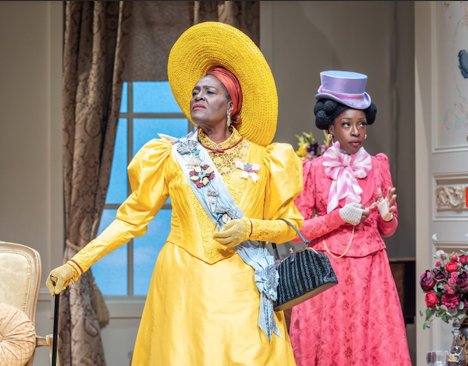 It is not colour blind. The three related characters, Lady Bracknell, her daughter Gwendolen, and her nephew Algernon, are all actors of colour and they play it that way, not in a neutral manner. By the time we get to the revelation at the end, that Algernon and Jack are brothers, we’re too far into it to wonder about it at all. After all, we should also realize at that point that Jack and Gwendolyn will also be first cousins but no one ever thinks about it.